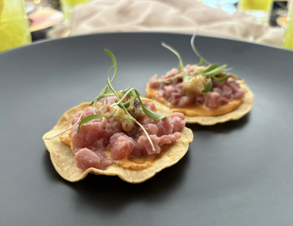 Entre mis favoritos se encuentran las tostadas de atún con un toque de tuétano que combinan el mar y la tierra en un delicioso bocado, y el taco de picaña con frijoles maneados que merece toda la pena. En cuanto al postre tuve la oportunidad de probar su versión del arroz con leche que combina la técnica del azúcar crujiente por encima, típico del crème brûlée. Un cierre perfecto para una tarde increíble.