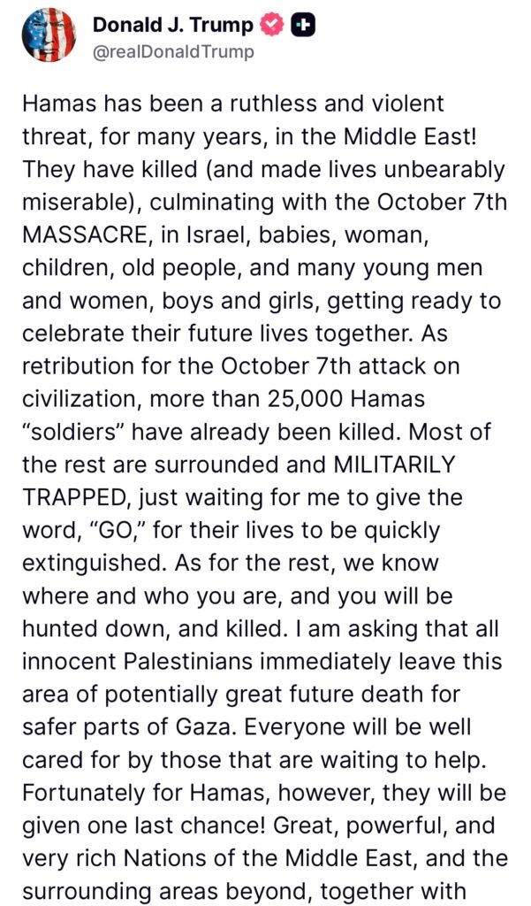 En su declaración, Hamás expresó que “aprecia los esfuerzos árabes, islámicos e internacionales, así como los esfuerzos del presidente de Estados Unidos, Donald Trump, pidiendo el fin de la guerra en la Franja de Gaza, el intercambio de prisioneros y la entrada inmediata de ayuda”. Sin embargo, aclaró que su aprobación está sujeta a discutir los detalles mediante mediadores.