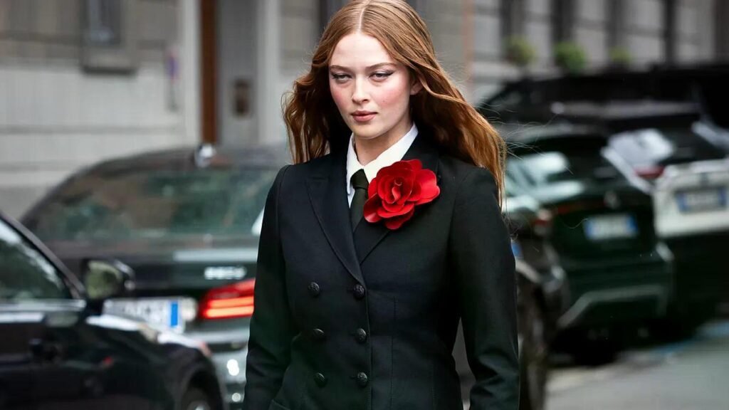 El rojo, en todas sus versiones, se confirma como el color estrella. Desde rojo clásico hasta tonos cereza o burgundy, funciona igual de bien en vestidos minimalistas que en suéteres combinados con pantalones sastre. Es un color que habla por sí solo y no necesita demasiados extras.