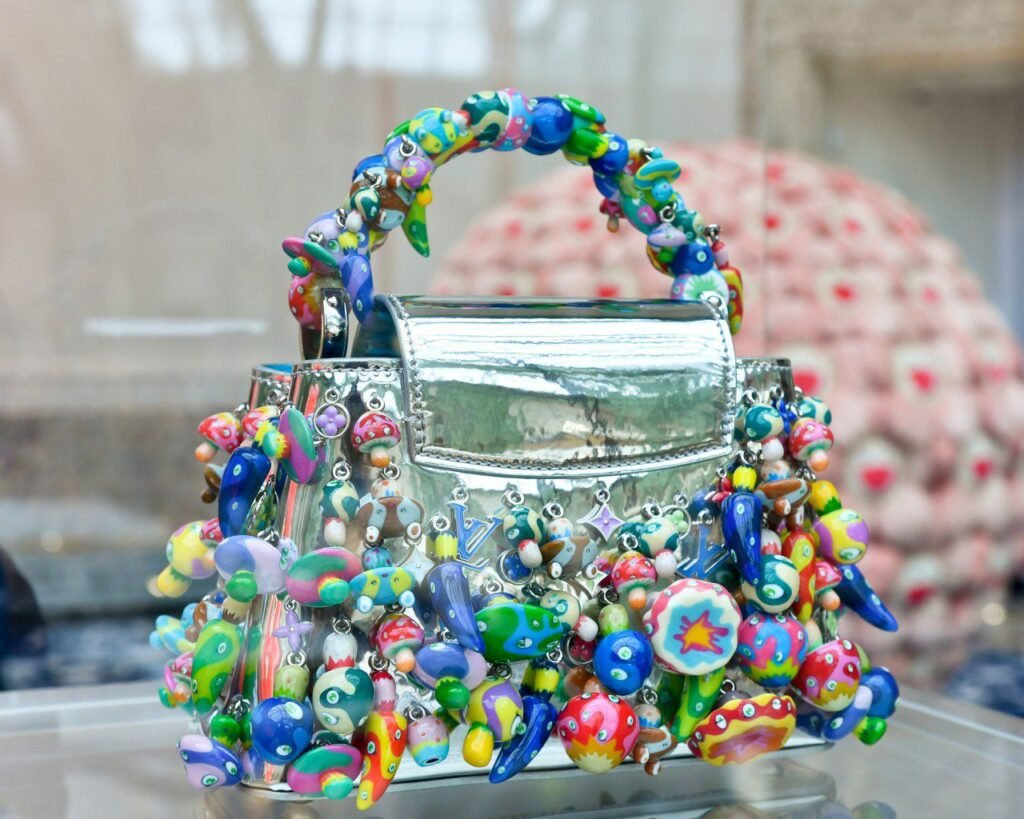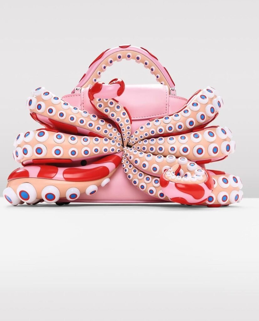 Entre las piezas más espectaculares estuvo la Capucines Mini Tentacle, con el pulpo de su alter ego Mr. DOB; el Rainbow, lleno de sus flores sonrientes; y un Mini Mushroom que parece un bosque psicodélico.