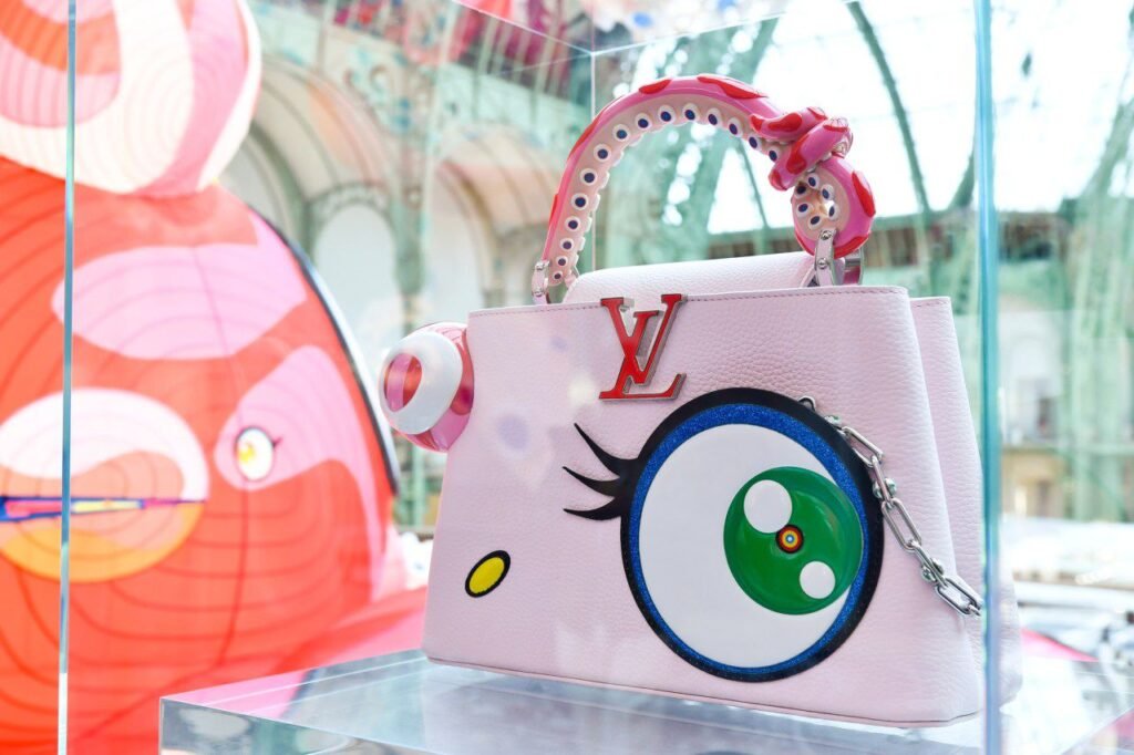 La maison presentó la séptima edición de su serie Artycapucines, y cada bolso fue literalmente una obra de arte portátil. Murakami usó la irónica Capucines como su lienzo para jugar con colores, texturas y su estética “Superflat” —esa mezcla hipnótica entre cultura pop japonesa, anime y lujo contemporáneo.