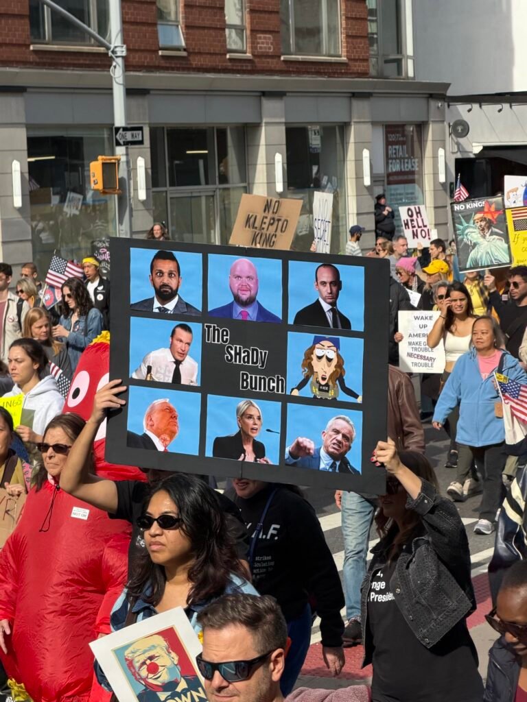 Las marchas, celebradas de costa a costa —desde Nueva York hasta San Francisco e incluso cerca de Mar-a-Lago, Florida, donde el mandatario pasó el fin de semana—, tuvieron como lema principal “No a los reyes”, en alusión directa a lo que los organizadores describen como el estilo de gobierno autoritario del presidente.