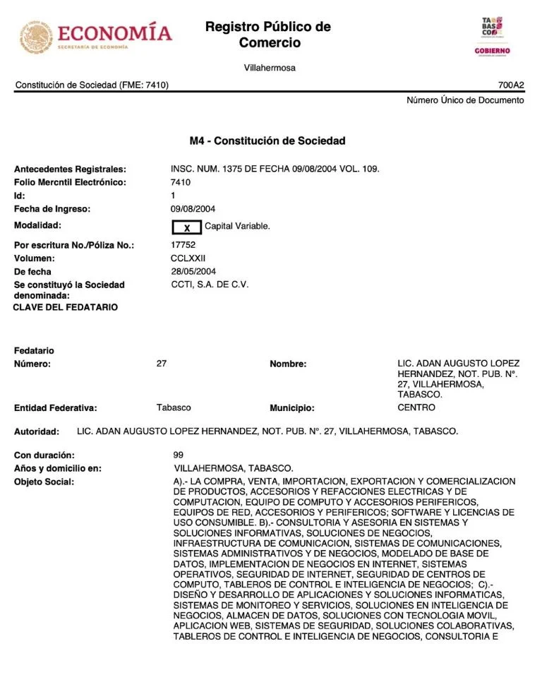 La ASF reportó que CCTI SA de CV, constituida ante la notaría 27 de Adán Augusto López, recibió 92 millones 650 mil pesos de Pemex, a través de la Universidad Autónoma del Carmen, con base en un convenio de marzo de 2012, vigente hasta 2024. El órgano fiscalizador determinó que la empresa no presentó evidencia documental que comprobara los servicios por los cuales recibió los pagos.