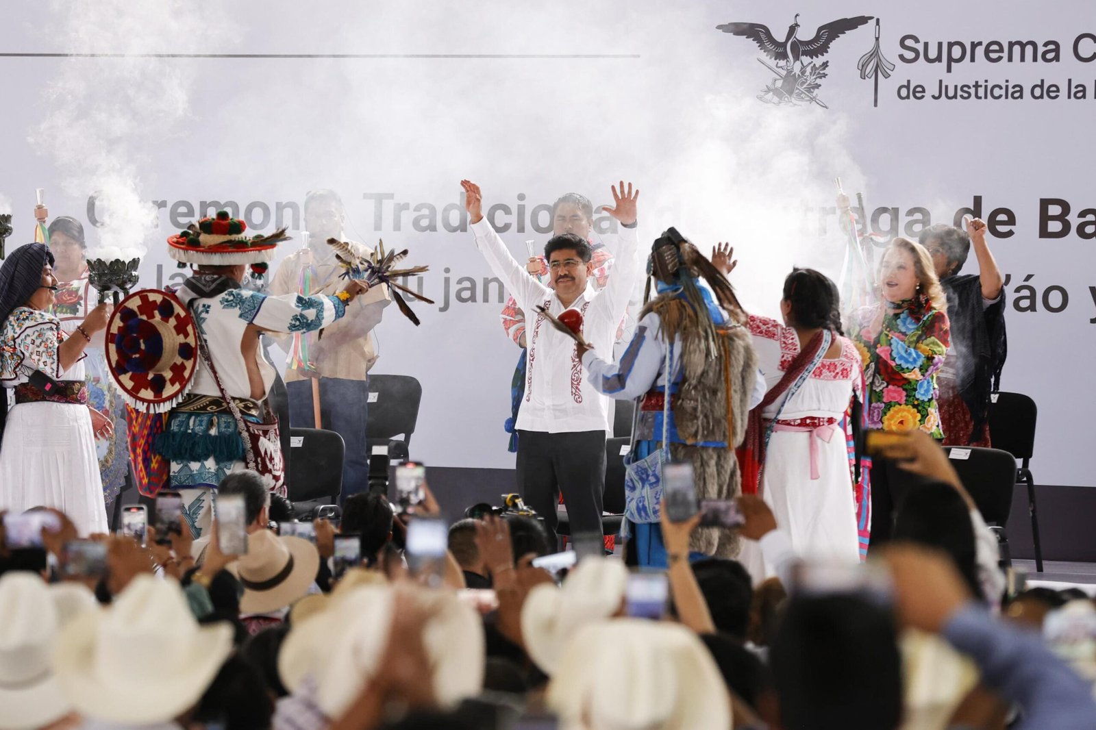 Las nuevas ministras y ministros de la Suprema Corte de Justicia de la Nación (SCJN), electos en las urnas el pasado 1 de junio de 2025, participaron este lunes en una ceremonia tradicional de purificación y entrega de bastón de mando y servicio en el Zócalo de la Ciudad de México. El acto se llevó …
